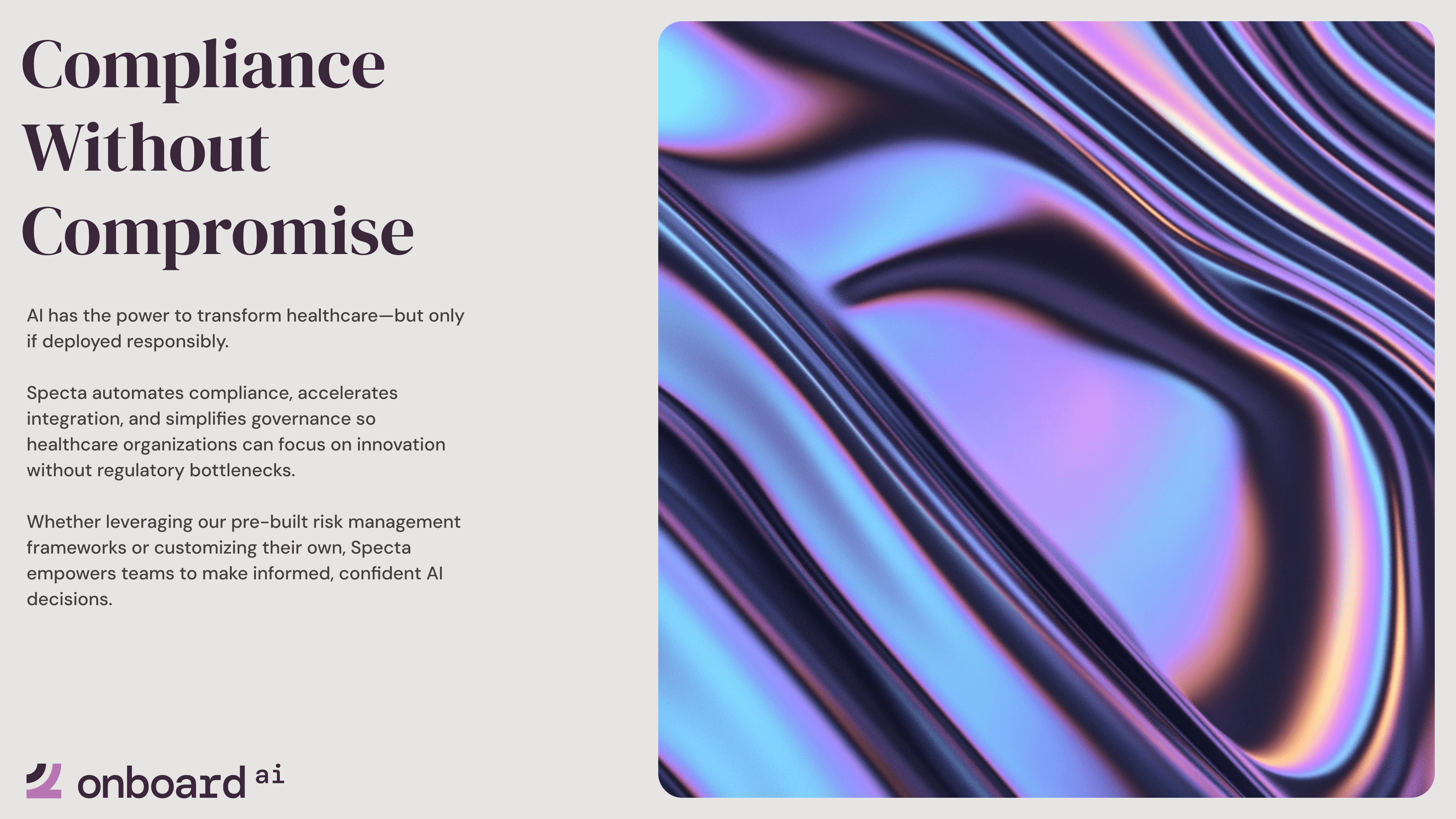 OnboardAI helps healthcare organizations evaluate and govern AI with enterprise-grade rigor, streamlining compliance, validation, and monitoring through reusable deployment infrastructure.